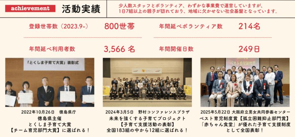 私は自身の産後うつの経験を原点に、「親が孤立しない社会」を目指し、居場所を通して、年間3,500名以上の親子に伴走してきました。地域の中に温かな居場所をつくること、行政・医療・企業と協働しながら、親支援から始まる子育て支援モデルを徳島県で形にしてきました。